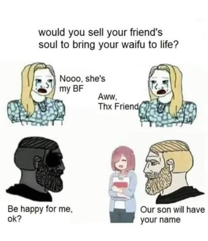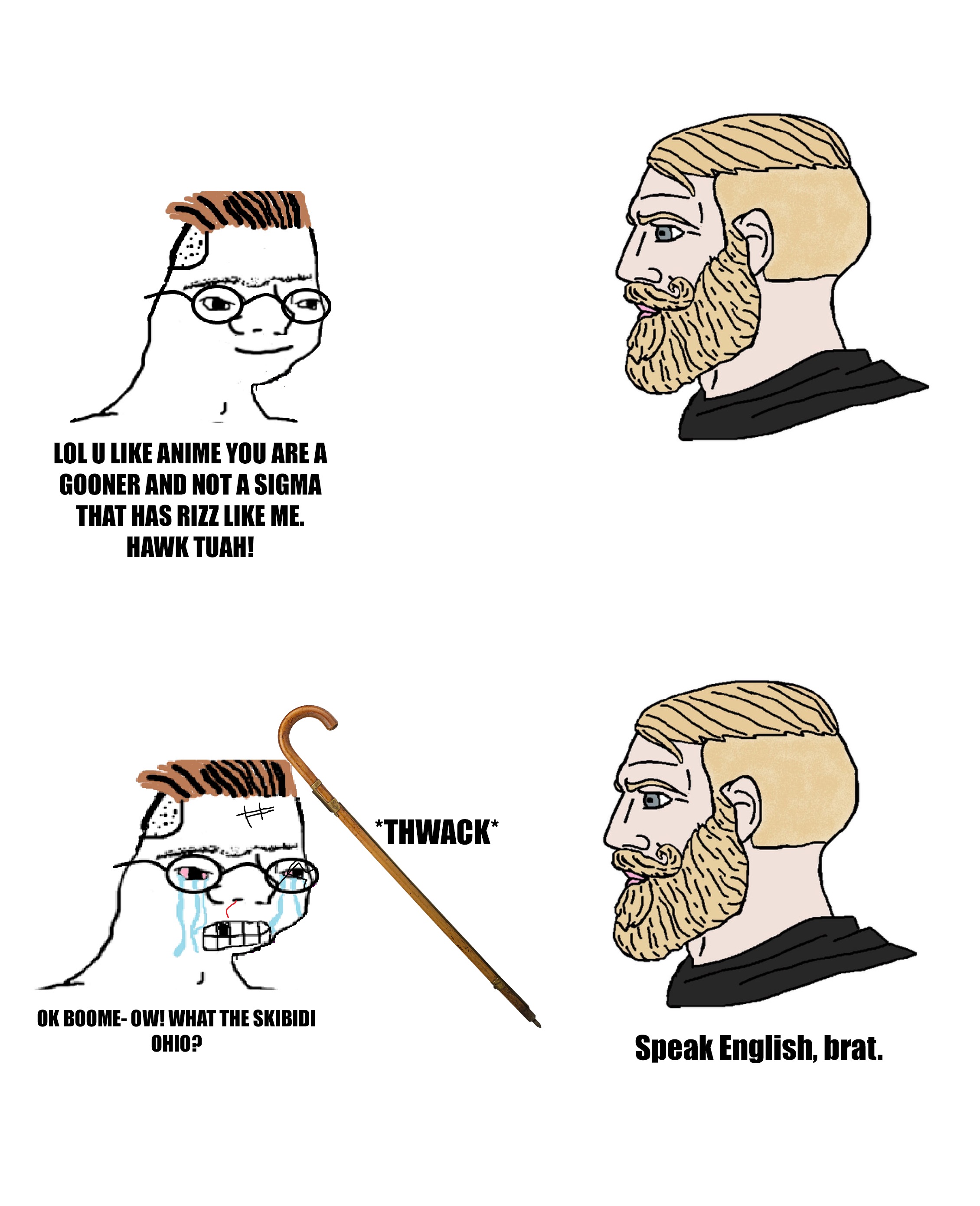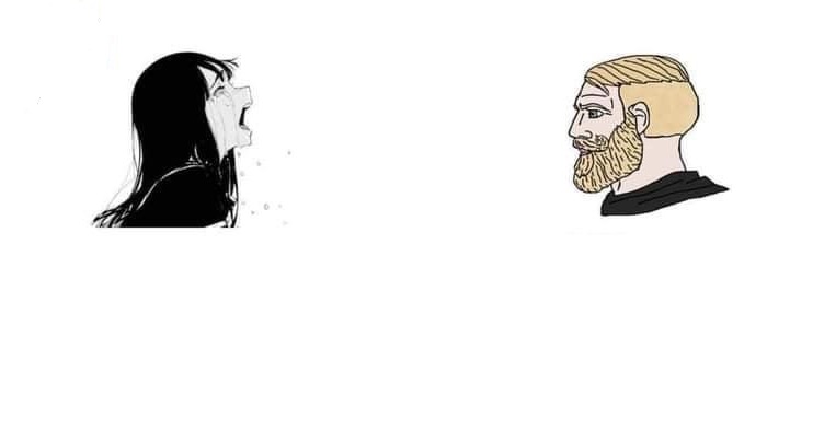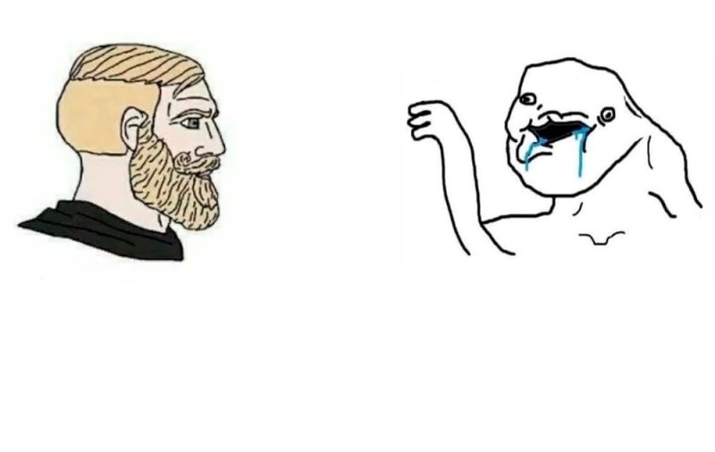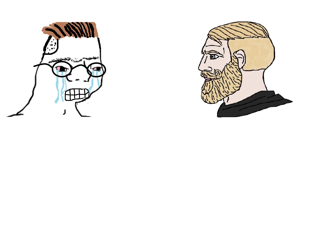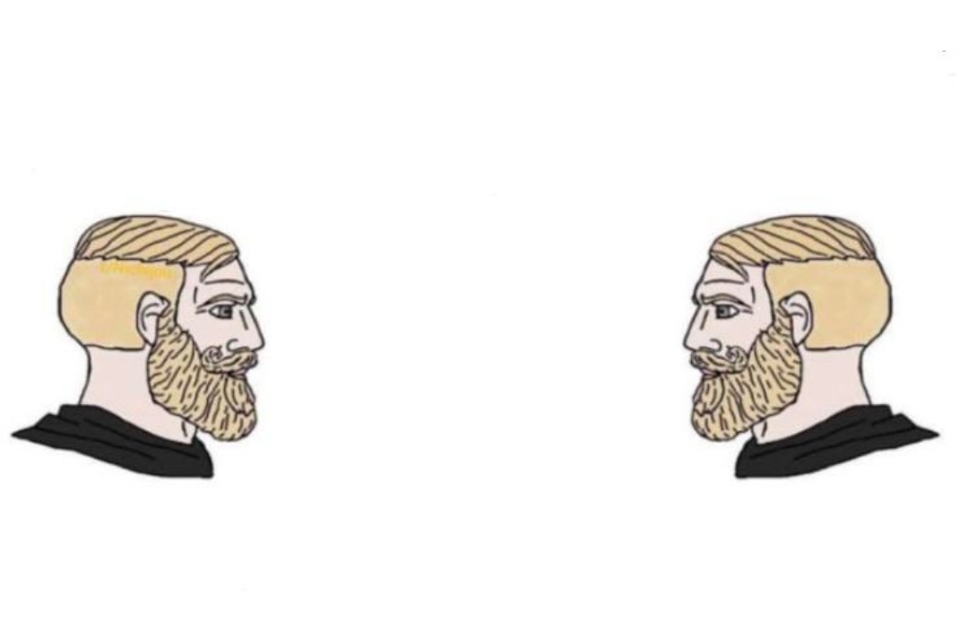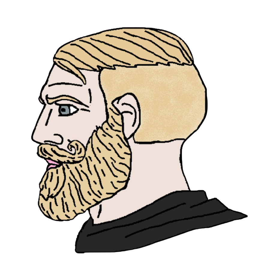 The drawn image of Chad is a sub-format of the older Nordic/Mediterranean 4chan meme, which had been circulating on /pol/ since 2016 as a way of arguing about which European archetype was historically less cucked. Chad then graced Twitter in early August 2019. Today he's being used as a reaction image to represent supreme confidence, superiority, and the effortless dismissal of anyone who dares to mock or challenge him.